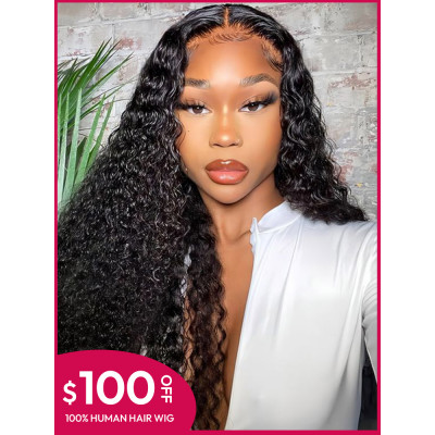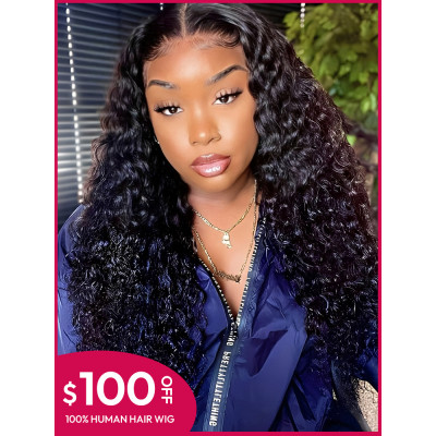 Flash Sale - Crimped Deep Wave Human Hair Wigs 150% Density Lace Front Wigs